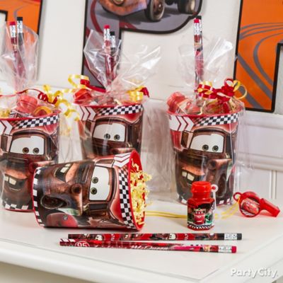 Cars Themed DIY Paper Cup Decorations on a Birthday Table
