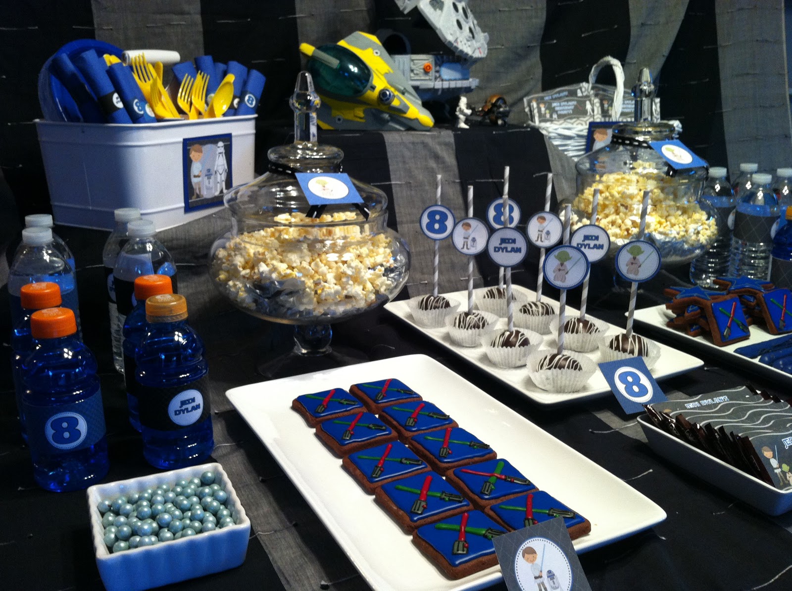 A birthday party dessert table has to be the most alluring aspect of the party. Everyone has a “sweet tooth” and it is really difficult to say no to desserts. With a Star Wars theme you can set up a sumptuous dessert table that will make everyone go “Wow”! From cupcakes to candies and ice creams to chocolates you can get them all arranged in a big table and decorate it with Star War character cutouts and other decorations. Checkout the dessert table ideas for Star Wars birthday party theme.