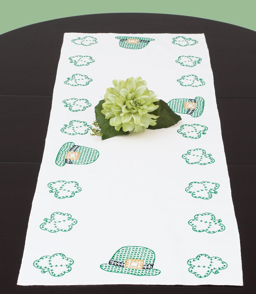 Stamped Valentines table runner with hat designs